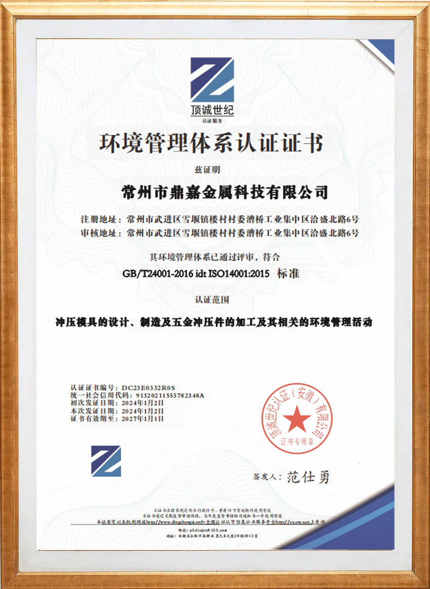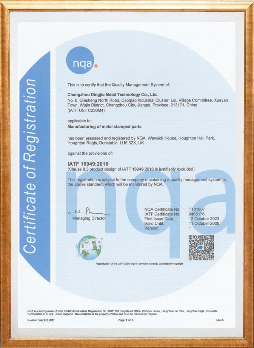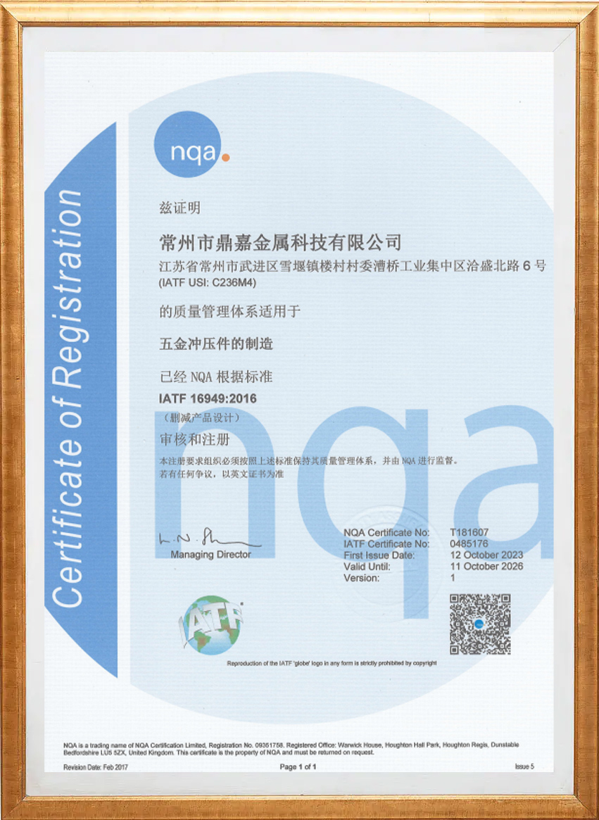 Changzhou Dingjia Metal Technology Co., Ltd. byl založen v roce 2010. Jeho hlavním obchodem je design, montáž a údržba přesných kovových forem, jakož i výroba kovových lisovacích dílů. Jedná se o soukromý podnik, který se zabývá hlavně výrobou přesných kovových lisovacích dílů. Společnost se nachází ve městě Xueyan ve městě Wujin, Changzhou, sousedící s jezerem Taihu Lake, 220 km od letiště v Šanghaji Pudong a 59 km od mezinárodního letiště Changzhou Benniu. Rostlina pokrývá plochu 5400 m². V roce 2024 bude přidáno dalších 1500 m² závodu s registrovaným kapitálem 19 milionů juanů. Společnost má úplný systém řízení kvality a získala uznání průmyslu pro svou integritu, sílu a kvalitu produktu. Produkční výrobky jsou distribuovány hlavně v polích automobilů, elektroniky a lékařských strojů a staly se partnery s mnoha známými podniky.